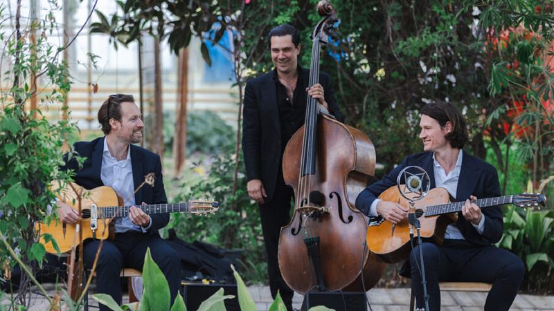 De bezetting is geïnspireerd op de stijl van Django Reinhardt en later het Rosenberg Trio: akoestische gitaren en contrabas.