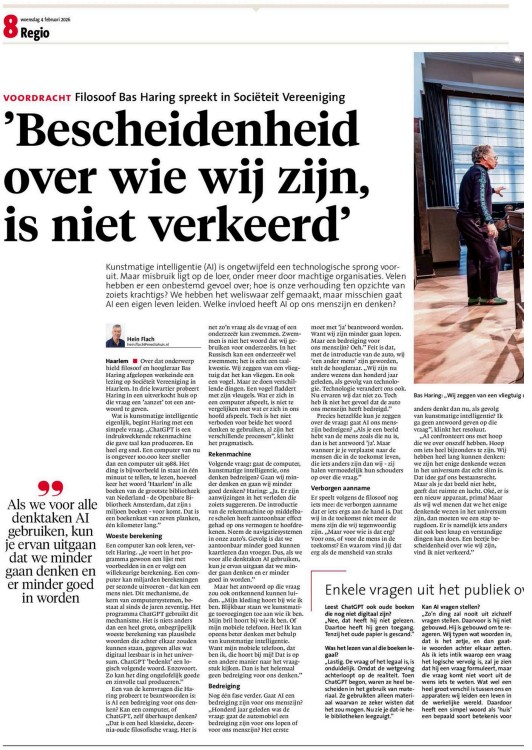 Over dat onderwerp hield filosoof en hoogleraar Bas Haring afgelopen weekeinde een lezing op Sociėteit Vereeniging in Haarlem. In drie kwartier probeert Haring in een uitverkocht huis op die vraag een aanzet tot een antwoord te geven.