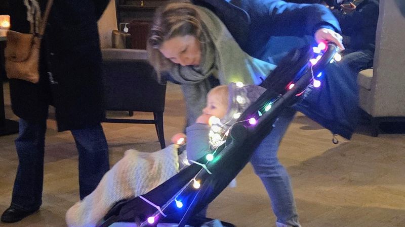 Bij het startpunt in de Bavokerk werden we ontvangen met muziek en uitgezwaaid door burgemeester Wienen. Niet veel verder bij Soellaart al de eerste stempelpost, waar een paar Pieten ons voorzagen van pepernoten; een veelbelovend begin. Het was een heerlijke wandeling, veel sfeervolle verlichting en het weer werkte fijn mee. Vooral de prachtige verlichte steltlopers bij de start en bij de Oude Kerk maakten de tocht echt sprookjesachtig. Het lichtkunstwerk aan het einde bij de Hooimarkt, dat met een spuitinstallatie door de brandweer in beweging werd gehouden, was voor ons nummer 1. Maar het meest verrassend was de ontvangst op de rode loper bij de Sociëteit.