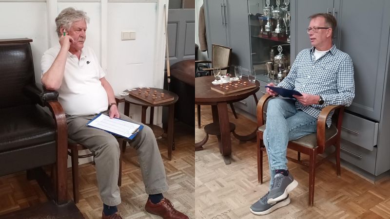Vrijdag 10 april, uit tegen Hilversum, ‘Driehoek libre’. De Driehoek biljartcompetitie gaat tussen de sociëteiten uit Hilversum (De Unie), Den Haag (De Witte) en Haarlem (De Vereeniging, wij dus). Wij zijn dit keer Frank Beverdam, Hans Peters en ondergetekende. Allen met handicap 38 voor de spelsoort libre, vandaar Team 38.