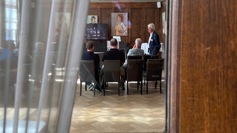 Gedurende de middag kon Henri Christiaans zijn prachtige presentatie (gemaakt voor de Open Dag) over de historie van de Sociėteit, de architectuur en de verbouwing, meerdere keren herhalen. De aansluitende rondleidingen werden afwisselend door Henri, Willy Meekes en Karin Bosman verzorgd. De deelnemers, die onder begeleiding ook de verhuurde ruimtes mochten bewonderen, kwamen allemaal enthousiast terug. Door de fotos van voor de verbouwing was er veel lof voor de prachtige ruimtes die nu door Kikid, het Patronaat en Crush worden gehuurd.